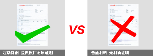 普通材料無原廠材質(zhì)證明或無材質(zhì)證明。